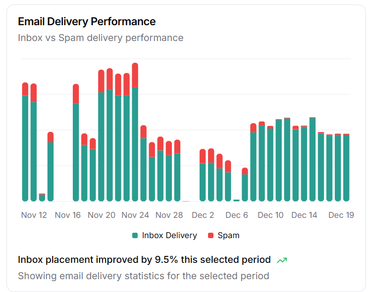 | Week 3 (Dec 11-Dec 20) | The Deal Close | Domain is clean. Green bars dominate. Spam stays near 0% through the end of the year. |