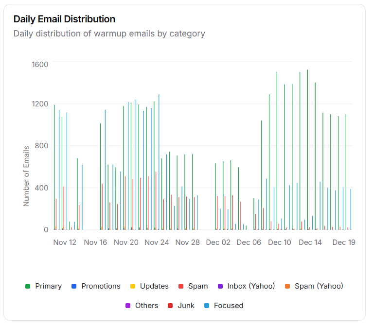 | Week 3 (Dec 11-Dec 20) | The Deal Close | Domain is clean. Green bars dominate. Spam stays near 0% through the end of the year. |